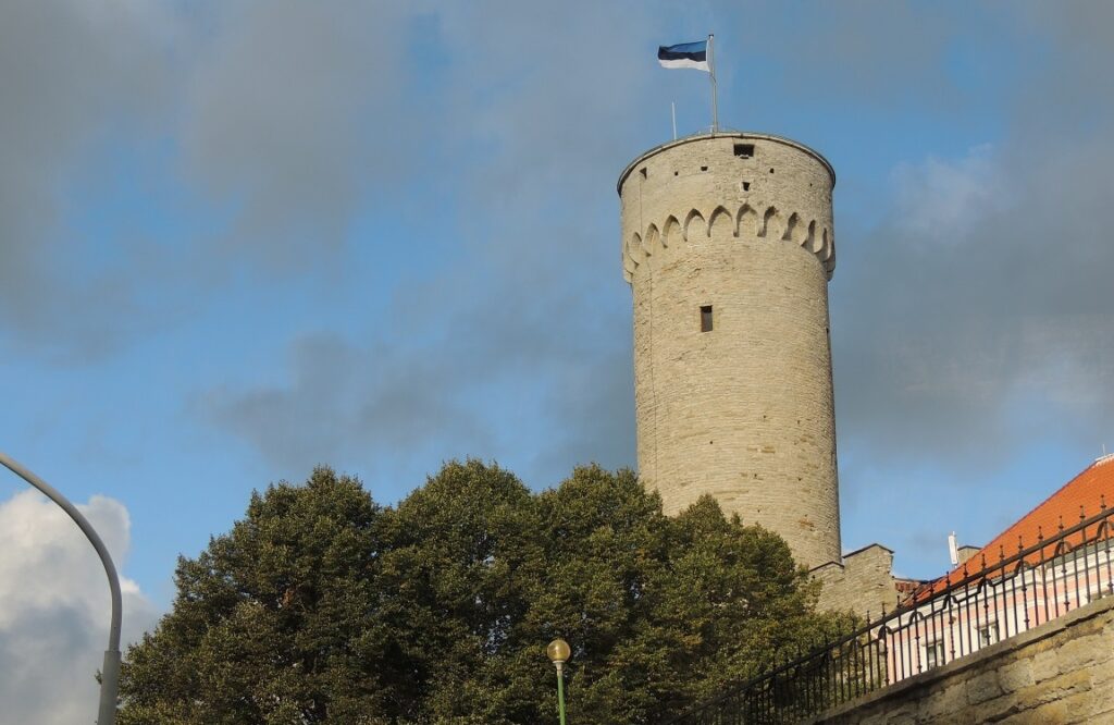 The castle Toompea itself was built by Danish crusaders under King Valdemar II in 1219 on the foundations of an Estonian fortress from the 9th century; it happened after the Danish king’s successful campaign, where the Danish cross flag is said to have fallen from the sky and turned the fortunes of war.